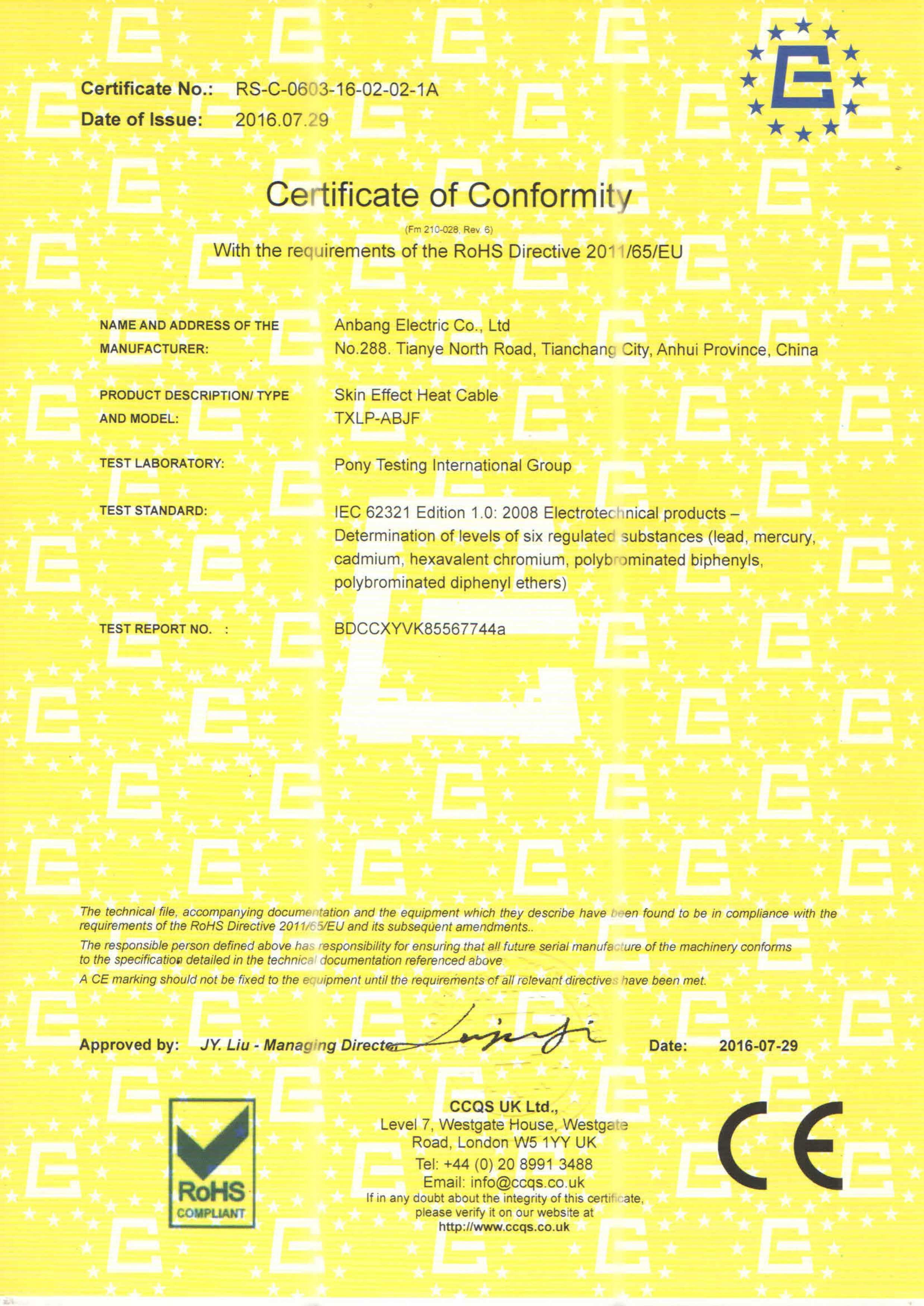 安邦電氣股份有限公司,總部位于北京市長安街,成立于2004年,注冊資金10088萬。安徽生產基地占地面積63000平方米,擁有66套各類生產線,其中進口生產線6套。國家高新技術型企業(yè),滁州市市長質量獎企業(yè),專精特新“小巨人”企業(yè),擁有國家知識產權局授權的45項專利,其中發(fā)明專利28項 , 主筆《太陽能熱利用自限溫電熱帶安裝規(guī)范》行業(yè)標準,參編《自限溫電伴熱帶》國家標準、《工業(yè)和商業(yè)用電阻式伴熱系統(tǒng)》國家標準、《太陽能熱利用自限溫電熱帶》行業(yè)標準、《爆炸性環(huán)境 電阻式伴熱器》國家標準等7項國家標準。企業(yè)通過UL認證,國家強制性 CCC產品認證,ISO9001質量管理體系認證,ISO14001環(huán)境管理體系認證,ISO45001職業(yè)健康安全管理體系認證,Q/SHS0001.1健康、安全與環(huán)境管理體系認證,歐盟防爆ATEX認證,歐盟CE認證,RoHS認證,俄羅斯海關聯(lián)盟認證,國家防爆電氣CCC證書。產品系列:集膚伴熱系統(tǒng)、電伴熱系統(tǒng)、電加熱器、電地暖系統(tǒng)、集儀器儀表、電線電纜、高低壓配電柜(箱)、電纜橋架、閥門管件等等設計、制造、銷售。產品應用于航天航空、軍工、石油、石化、天然氣、機場、化工、鋼鐵、隧道、消防、養(yǎng)殖、融雪化冰、室內供暖、國家電網及眾多電廠等等國家重點工程。出口美國、英國、德國、俄羅斯、韓國、日本、哈薩克斯坦、烏克蘭、伊朗等眾多國家。
